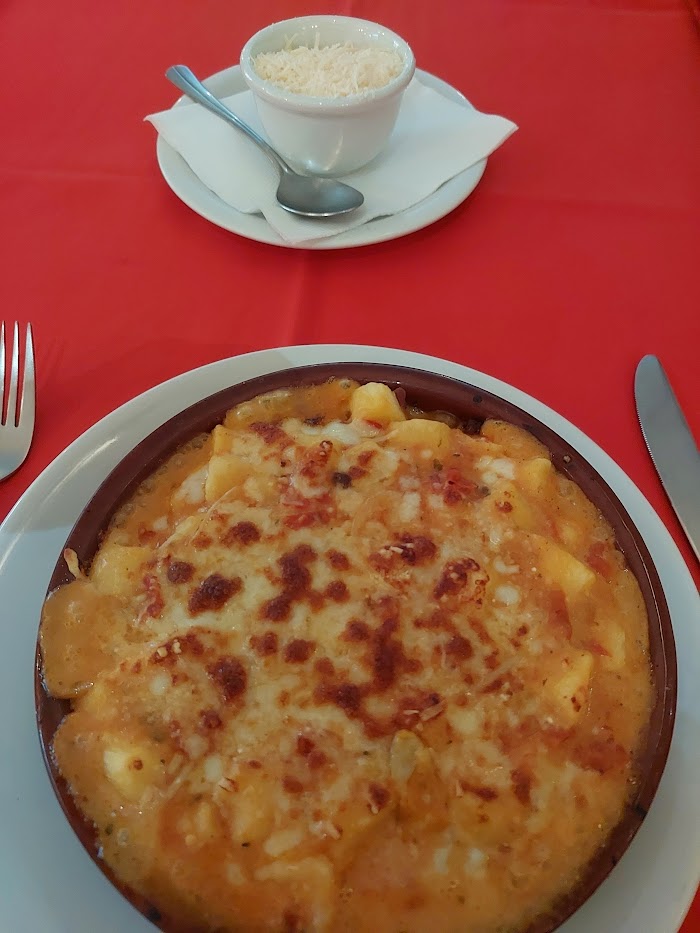 Pedi um carbonara, veio gratinado porém com muito molho e ficou pesado para comer. Pouco Queijo parmesão, não foi o suficiente para 4 pessoas.