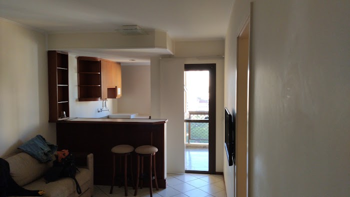 Quarto amplo com quarto e copa separados da sala, boa metragem para até 3 pessoas. Alguns quartos possuem sacada com vista para a praça.