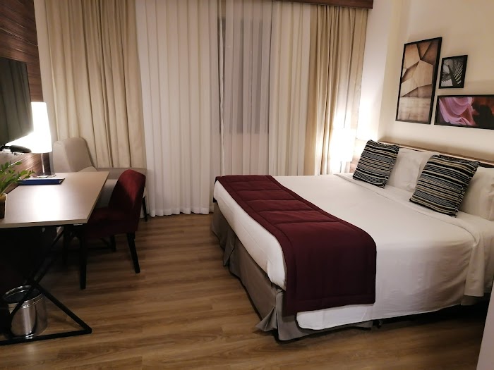 O grande destaque do hotel é sua equipe, extremamente atenciosa, simpática e educada. Fui muito bem atendido do check-in ao check-out. Destaque também para o time que nos atendeu no jantar. Fui alocado por uma companhia aérea e cheguei ao hotel próximo ao horário de encerramento do restaurante. A equipe preparou rápida, e com muito carinho, um jantar para todo o grupo. Que o RH da empresa saiba valorizar uma equipe tão destacada! Café da manhã com boa variedade: frutas frescas, duas opções de sucos, pães, frios, iogurtes, pães, bolos, waffles.